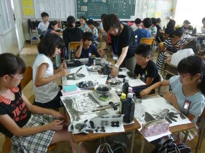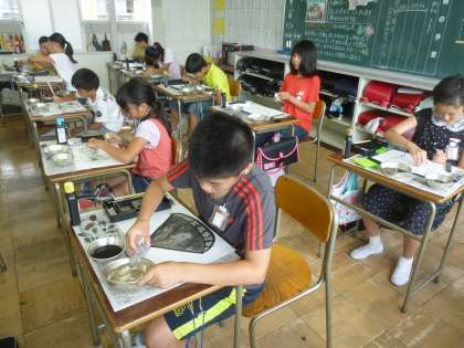 7.14 図工「墨で書こう」(6年生)