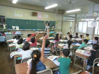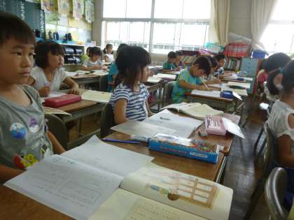 絵日記の書き方について指導しました。「ことばのひろば」という副読本ノートを使って説明しました。題や名前の書き方など、一つ一つ丁寧に説明しました。楽しい夏休みの思い出が書けることを楽しみにしています。