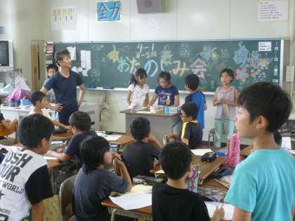 子どもたちが企画した「おたのしみ会」をしました。4年生になって、どの子も一段と成長しました。一生懸命努力する子、友達のことを心配する子、明るく前向きになった子など、うれしいことがたくさんありました。今日は、そんな子どもたちへのささやかな「ごほうび」の会です。