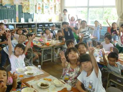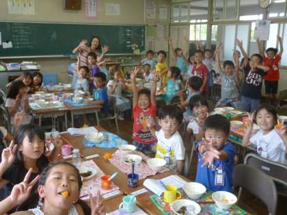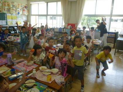 今日は、1学期最後の給食でした。子どもたちが大好きなひじきの炒め煮が出ました。また、冷凍ミカンも出て、「冷たい、冷たい」と言いながら食べていました。入学以来、小学校生活にも十分なれて、元気に健やかに成長してくれました。保護者の皆様のご協力と感謝申し上げます。ありがとうございました。