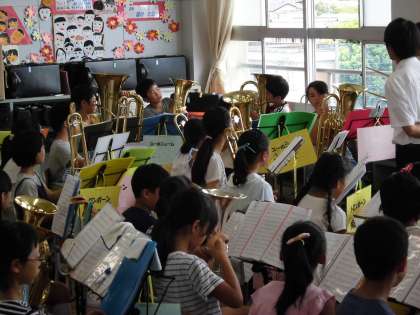 金管バンド部は午後から練習を行いました。初めは低学年音楽室で音を出す練習をしました。その後で、体育館でマーチングの練習も行いました。運動会でどんな演奏を聞かせてくれるのか、今から楽しみです。