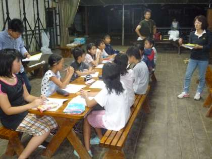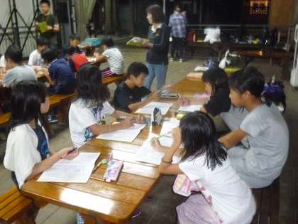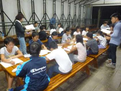 一日目の予定をすべ終了しました。お風呂にも入り、班長会では、明日の予定の確認をしました。怪我や病気もなく、全員元気です。例年に比べて涼しいのがとてもありがたいです。