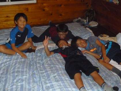 消灯までのひとときを各部屋で過ごしました。友達といろいろな話をして、楽しく過ごしていました。今日一日、病人やけが人もなく、みんな元気に過ごすことができました。