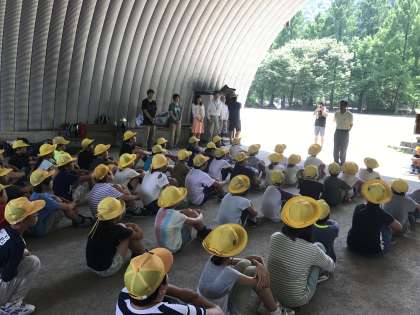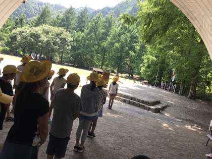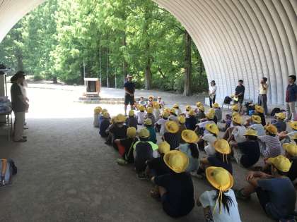 退村式を迎え、お世話になった自然園ともお別れです。今から鍾乳洞に向けて出発をします。