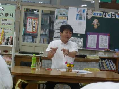 今日は、教師の力量向上のための現職教育という時間を設定しました。元一宮市教育委員会指導主事、現在、南部中学校教頭の岩井先生にお越しいただき、「信頼できる学校」というテーマでの講演をお願いしました。