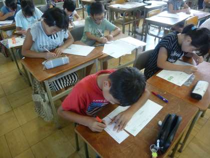 全校出校日でした。宿題を出してもらったり、夏休みの思い出を話してもらったりしました。また、運動会のポスターをかいてもらう人を決めたり、敬老の日に出す「お年寄りへの手紙」を書いたりしました。