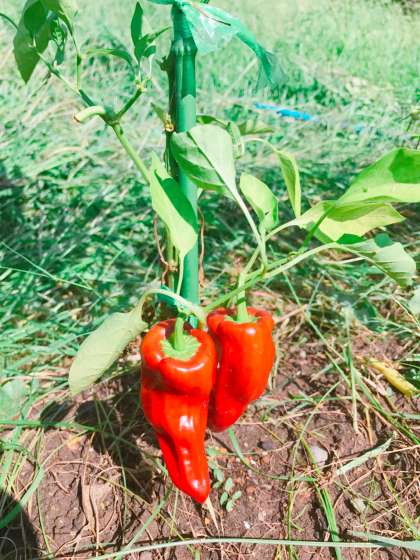 8.30夏野菜 公開日 2017/08/30 更新日 2017/08/30 学校ニュ−ス 長かった夏休みが残り1日で終わろうとしていますが、まだまだ日中は暑いですね。そんな暑い中、太陽の日差しに照らされて学年園で育てている夏野菜たちは元気いっぱい。今日も大きな実をつけています。