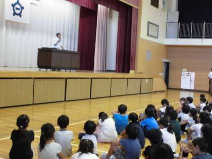 2学期の始業式を行いました。向山小学校の全校児童が、元気に「おはようございます」のあいさつを行いました。校長からは「元気なあいさつができたこと」「2学期に向けて心のスイッチを切り替えましょう」と話しました。そして、2学期を迎えるにあたって、「先生のお話を目を見てしっかり聞くこと」「苦しいことでも我慢して何でも取り組むこと」「友達に優しくすること」の3つについて話をしました。