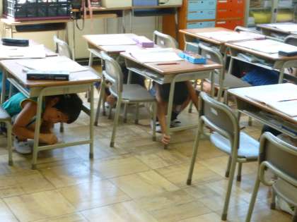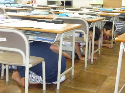 始業式の後、学級活動を行いました。その後、「防災の日」にちなんで、全校で避難訓練を行いました。地震や台風など、自然災害への備えは、小さいうちから、日常的に意識を高めておくことが大切であると考えています。