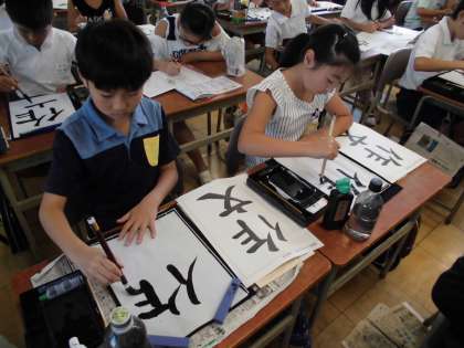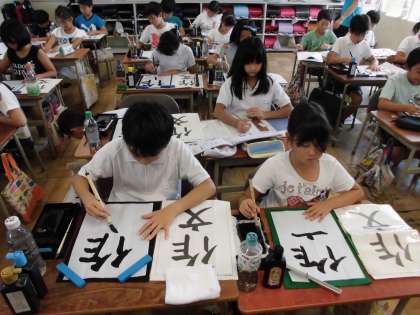 書写の時間では、「作文」という字を練習しています。お手本の字を真剣に見ながら練習に取り組んでいます。上手な字が書けるようになるといいですね。