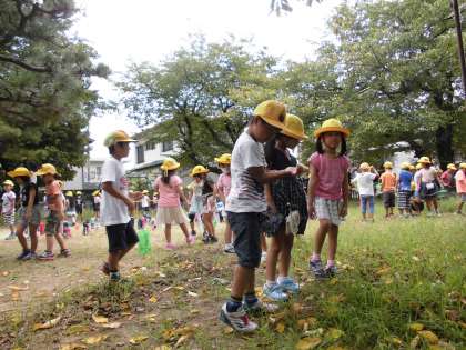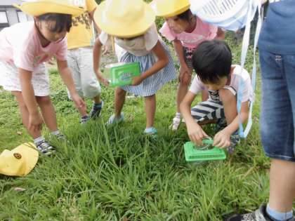 生活科の学習で、虫とりに真清公園まで行きました。コオロギやショウリョウバッタなど、秋の虫を捕まえることができました。途中、雨に降られましたが、上手に雨宿りして帰ってきました。