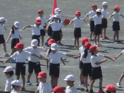 体育の授業では、運動会の演技練習を進めています。「ヒーロダンシング」というタイトルの表現を練習しています。振り付けをしっかり覚えて、運動会で精一杯踊りましょう。