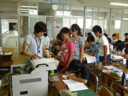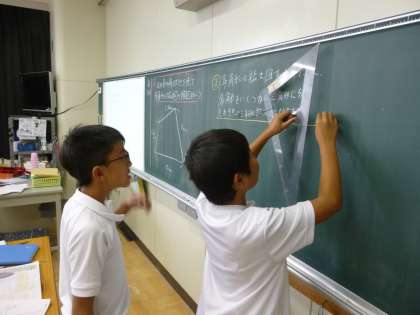 様々な方法で拡大図や縮小図を書く練習をしています。今日は、辺の長さや角度を測ってかかせました。正確に測り、丁寧に作図するよう声をかけました。