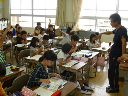 木曽三川分流工事にかかわった人々の苦労や努力について学習しました。当時、治水工事では、85名もの命がなくなったり、多くの借金のために自殺してしまった人々がいたことを説明しました。しかし、そのような先人の苦労のおかげで、洪水の被害が減少してきました。