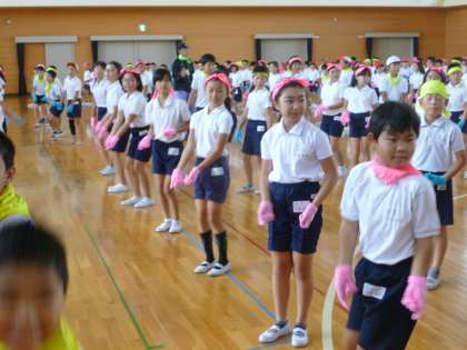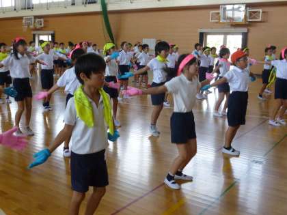 運動会の練習も仕上げの段階に入りました。今日は、バンダナや手袋を実際につけてみました。鮮やかな色が踊りをより一層華やかに見せてくれます。