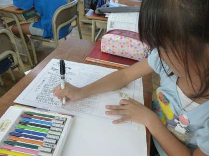 スーパーマーケットを見学して分かったことを新聞風にまとめました。たくさんのお客さんに来てもらうためにどのような工夫や努力をしているかについてまとめさせました。子どもたちは、丁寧な字でわかりやすくまとめることができました。