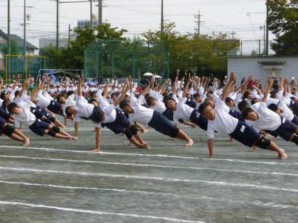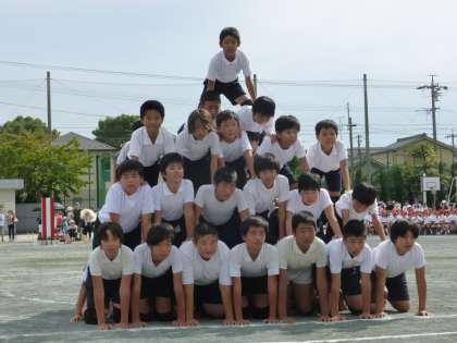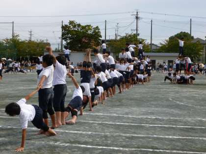 組立体操では、名作映画をテーマにしてた高学年ならではの演技を見せてくれました。子どもたちの一生懸命さ、そして、演技を心から楽しむ様子が見られました。