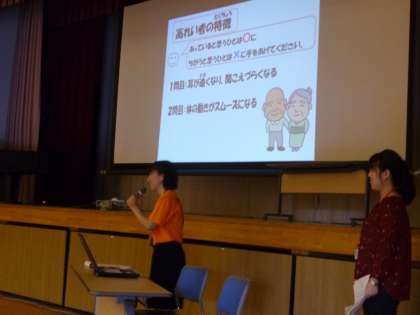 一宮市役所の高年福祉課から職員をお招きして「認知症サポート講座」を開催しました。寸劇などを通して認知症について理解を深め、認知症のお年寄りをどのように支えていけばよいのか、また、子どもたちにできることは何なのかなど、様々な視点でお話を聞くことができました。