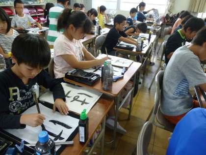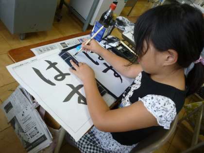 書写では、ひらがなの練習をしています。漢字と違って、曲がっているところが多く、形をとるのが難しいところがあります。今日は、「はす」という字の練習をしました。