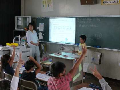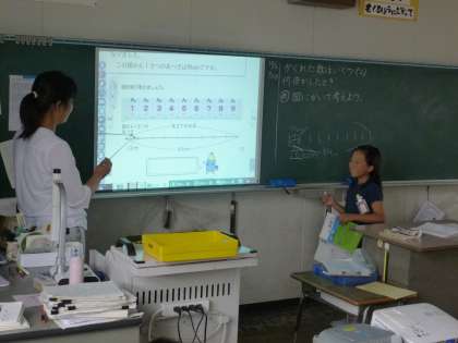 算数では、「隠れた数がいくつか」について考えさせました。「本の冊数と全体の厚さがわかっていて、では、1冊の本の厚さはどれだけか」という問題です。とのように考えればよいか、説明できるようにさせました。