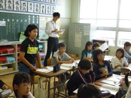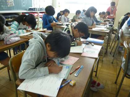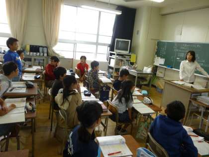 算数では、「公約数の見つけ方」についての学習を進めました。二つの数の約数を全部書き出して探す方法を理解させました。この方法は、最大公約数の理解にもつながっていきます。子どもたちの生き生きとした学習の様子が見られました。