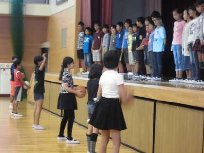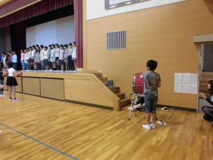 14日(土)15日(日)はサッカー部とミニバスケの選手権大会が行われます。サッカー部は光明寺球戯場で試合を行います。ミニバスケはいちい信金アリーナで行います。今日は児童集会で壮行会を行いました。