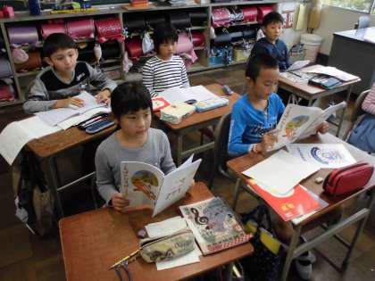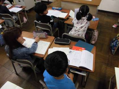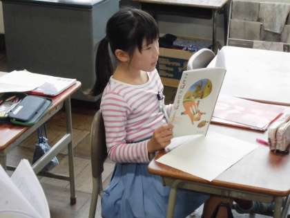 2時間目は国語の授業でした。先日の授業で書いたメモをもとに、どのようにスピーチするかを学習しました。「メモはキーワードを書く」「メモをちらっと見て話す」「動きを入れて話す」など、スピーチをするうえで大切になることを学んだあと、各自スピーチの練習に取り組みました。
