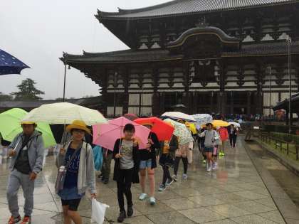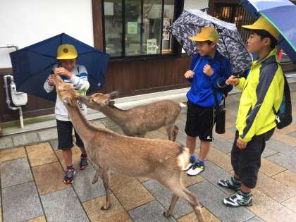 東大寺の見学の後、鹿にせんべいをあげたり、おみやげをかいました。雨の勢いよくが強くなってきました。