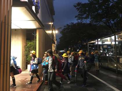 修学旅行の様子です。今夜お世話になるホテル本能寺に到着です。