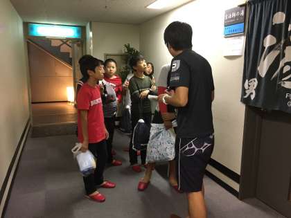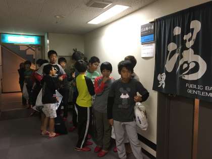 修学旅行の様子です。入浴時です。今日一日の疲れが取れますね。