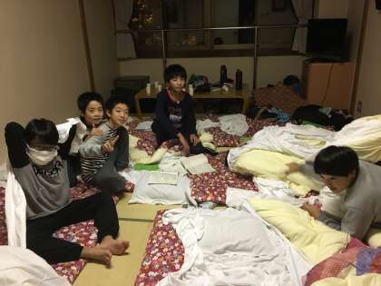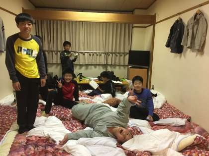 修学旅行の様子です。楽しい夜になりそうです。