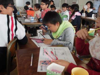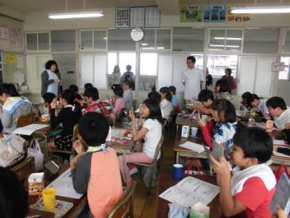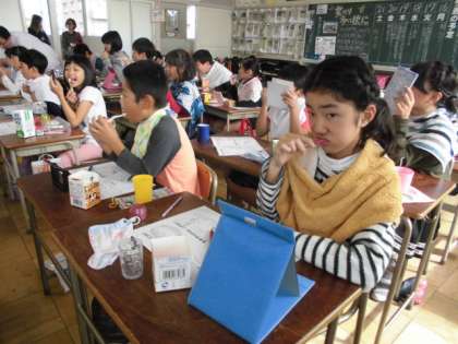 5年生の歯みがき教室の様子です。校医と一宮市口腔衛生センターから歯科衛生士の皆様をお招きし、歯みがき教室を行いました。子どもたちは、歯垢染め出し液を歯にぬって、磨き残しがないよう丁寧に歯を磨くことができました。
