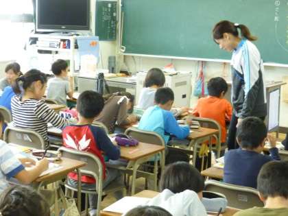 「秋」を題材とした詩をつくらせました。「秋」を感じさせる言葉を入れるよう指導しました。「落ち葉」「紅葉」など、子どもたちは、秋の色や香りなど、様々なものに感性を研ぎ澄ませて作詩をしていました。