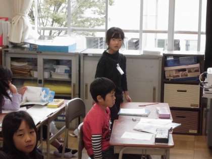 今日の国語の授業は、「くじらぐも」の第5場面で、クジラ雲とお別れする子どもたちの気持ちを考えて、音読しました。くりかえし音読することを通して、子どもたちの気持ちを想像し、音読にいかすことができました。みんな、上手に音読できるようになってきています。