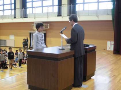 学級役員と代議員の任命式を行いました。学級役員は、クラスの中の様子をしっかり見て、友達が仲よく生活しているかどうか気にかけたり、先生のお手伝いも進んでできるようにしていきましょう。また、代議員は児童会の活動を、クラスに伝えたり、児童会の活動の補助をするお役目です。後期のみなさん頑張ってください。