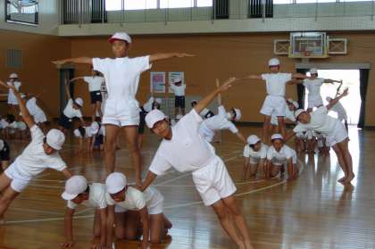 組み立て体操は5人組まで進みました。屋運にも気持ちのよい風がふき、練習にも集中できます。