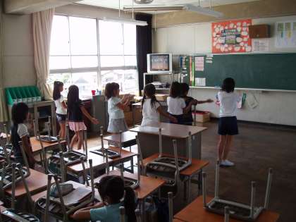 今週に入り、本格的に3年生のリズムダンスの練習が始まりました。踊りの全体的な流れが一人ひとりの子どもたちに身についたようです。意欲のある子は、休み時間にも音楽に合わせて踊っています。運動会での発表がとても楽しみです。