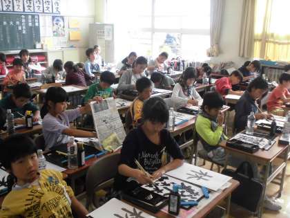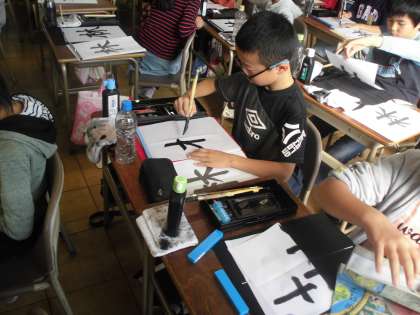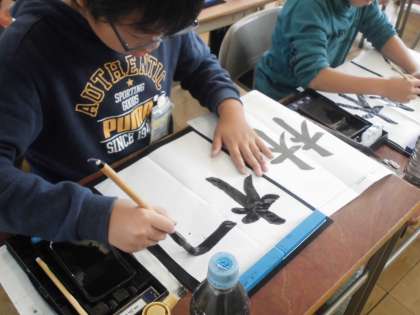 今日は、「林」という字を学習しています。「へん」と「つくり」のバランスに注意しながら、集中して練習に取り組んでいました。