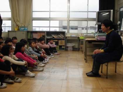 向山タイムの時間におはなしポケットの皆様による、ストーリーテーリング行われました。抑揚のついた語り口調に、子どもたちがどんどん吸い込まれ、子どもたちの瞳もキラキラ輝いています。おはなしポケットの皆様、早朝よりお越しいただき、ありがとうございました。