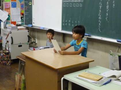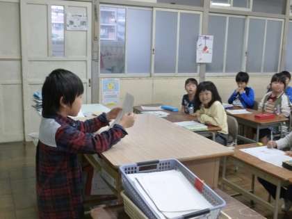 生活科では、「あきみつけ」の作文を発表しました。一人一人前に出てきて、大きな声で発表しました。子どもたちが見つけた小さな秋に忘れかけた季節の美しさや繊細さを感じさせてくれました。