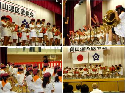 式典に続いてのアトラクションでは、初めに本校金管バンドが演奏を行いました。楽器紹介の時など、割れんばかりの大きな拍手をいただきました。