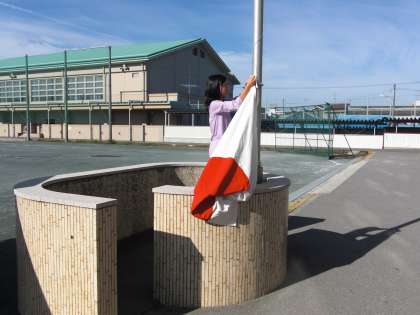 毎朝、児童会役員の子が交代で、国旗を揚げてくれます。毎朝、ご苦労様です。