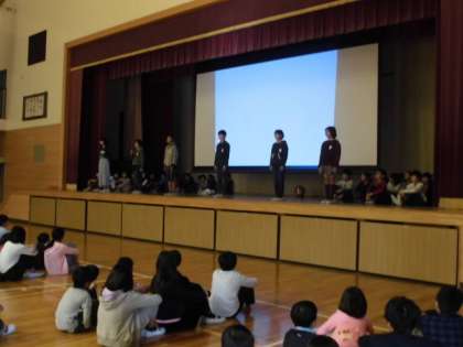 児童集会を行いました。児童会長の元気なあいさつに続き、全校児童が「おはようございます」と大きな声であいさつを返すことができました。代議員児童たちのからは、赤い羽根共同募金の協力について、呼びかけがありました。