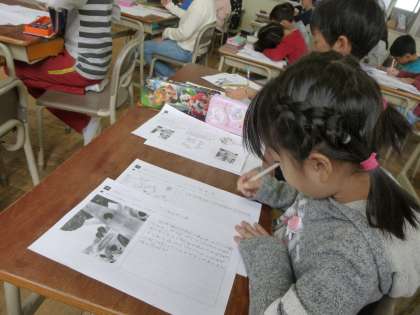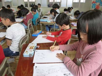 自分でお話を考えて書いています。今日は、文体や登場人物の設定などを考え、書き始めました。挿絵もかかせ、すでに、4枚も書き進めている子もいました。どのようなお話ができあがるか楽しみです。