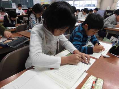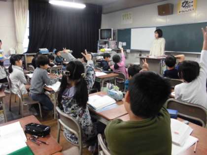 3年生の国語の授業の様子です。「すがたをかえる大豆」の本文から「おいしく食べる工夫」と「食品の例」を段落ごとに整理し、どのような順序で事例が挙げられているか確認することができました。