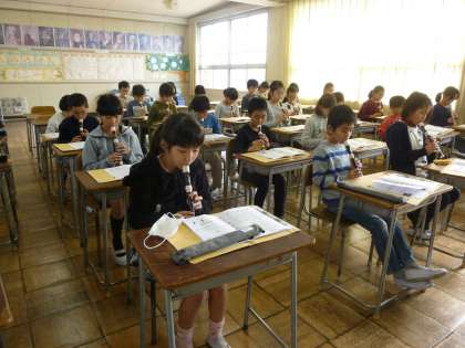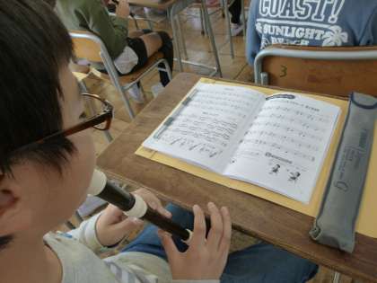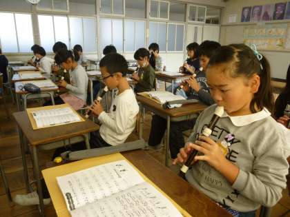 リコーダーの美しい音色が響いています。曲は、「スーパーマリオブラザーズ・地上BGM」と「もののけひめ」です。子どもたちの好きな曲だからこそ、練習意欲も高く、完成度も際立っています。