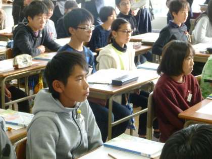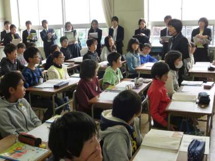 6年3組は、午後から市内から多くの教師を招いて研究授業を行いました。「わかる できる 身につく授業」を目指して、「表現の様々な技法」の効果について読み取らせました。また、そのような表現の技法を生かして、より心に伝わる文章に作りかえる練習にも取り組ませました。