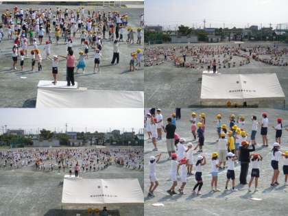 運動会で、保護者の方と一緒に踊る「織姫音頭」の練習を全校で行いました。「織姫音頭」は40年以上前から一宮の人々に踊り継がれている踊りです。初めて踊る1年生には、6年生が教えながら踊っている姿が見られました。運動会当日は、保護者の方に教えることができるように、みんな一生懸命に練習に取り組みました。