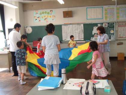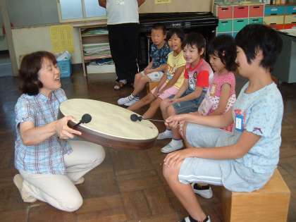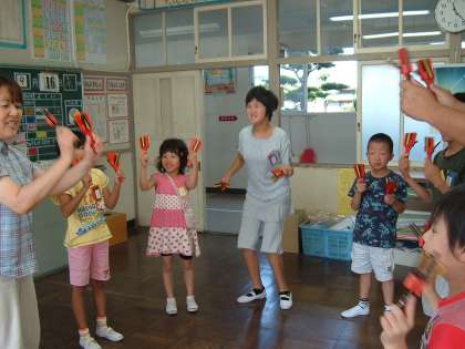 たいこやタンバリンを使って歌ったり、鳴子を使ってダンスをしました。