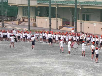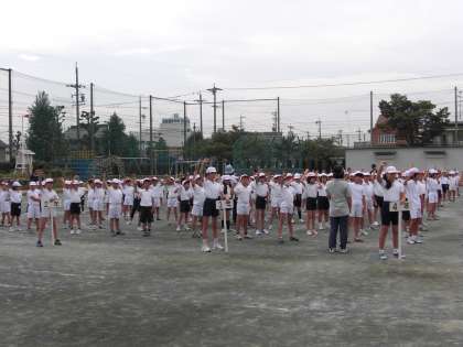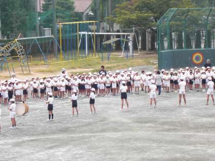 1時間目に、運動会の全校練習を行いました。今日は、入退場、開会式の練習の後、応援の練習を行いました。運動会の歌や応援では、大きな声を出す練習をしました。